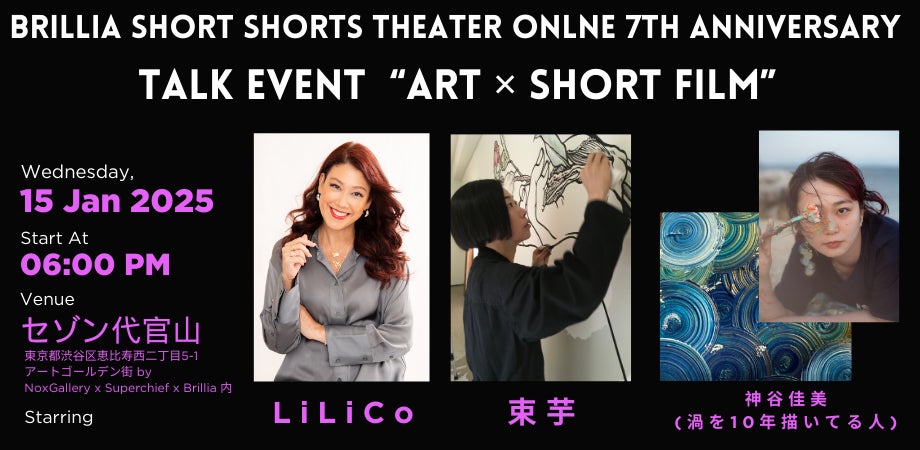 期間中の1月15日(水)にはBSSTO7周年イベントとして、映画コメンテーターのLiLiCoさんとアーティスト束芋さんによるトークイベントが開催されるほか、参加フィルムメイカー/アーティストがギャラリーよりライブ配信を行います。