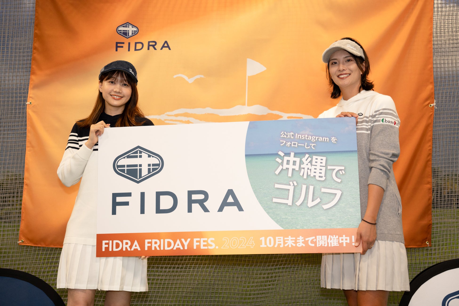 沖縄旅行にいけるInstagramキャンペーンを開催中の「FIDRA FRIDAY FES. 2024」。沖縄旅行が当たるという情報に大盛りあがりの二人。最近、プライベートで沖縄に行ったという高田は、「北海道出身で暖かいところが大好きなので、沖縄には何十回と行っています!」と、沖縄好きであることを明かしました。しかし、まだ沖縄でゴルフをしたことがないと言い、「心地よい風を浴びながら、きれいな海を眺められる場所でゴルフをするのが今の夢!」と意気込みます。