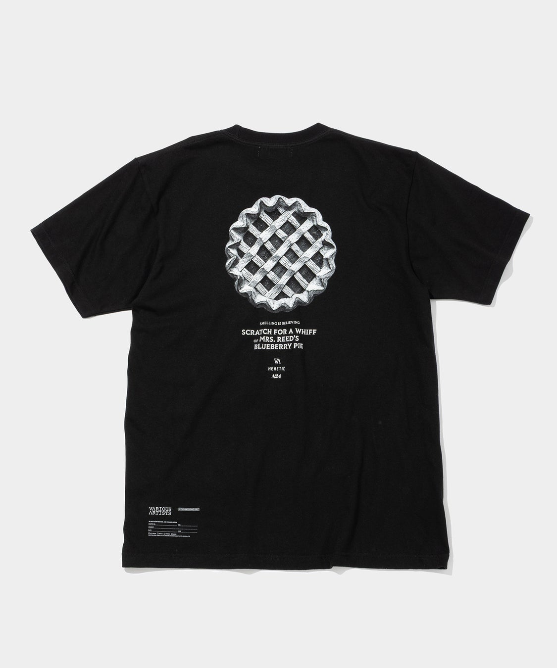 2019年公開の『ミッドサマー』や2021年公開の『LAMB/ラム』など世界的な話題作を手掛けてきた「A24」が新たに仕掛けるのは、ヒュー・グラント(Hugh Grant)主演の脱出劇を描いたサイコ・スリラー『異端者の家』。今回は、「A24」のロゴ、『異端者の家』の原題である“HERETIC”、『V.A.』のロゴをそれぞれあしらったTシャツ2型を展開する。ひとつは、正面に「A24」のアイコニックなロゴを、背面に同作のキートピックとなるブルーベリーパイとメッセージをデザイン。もうひとつには、作品中の印象的なシーンをグラフィックとして落とし込んでいる。価格はどちらも8,800円(税込)。