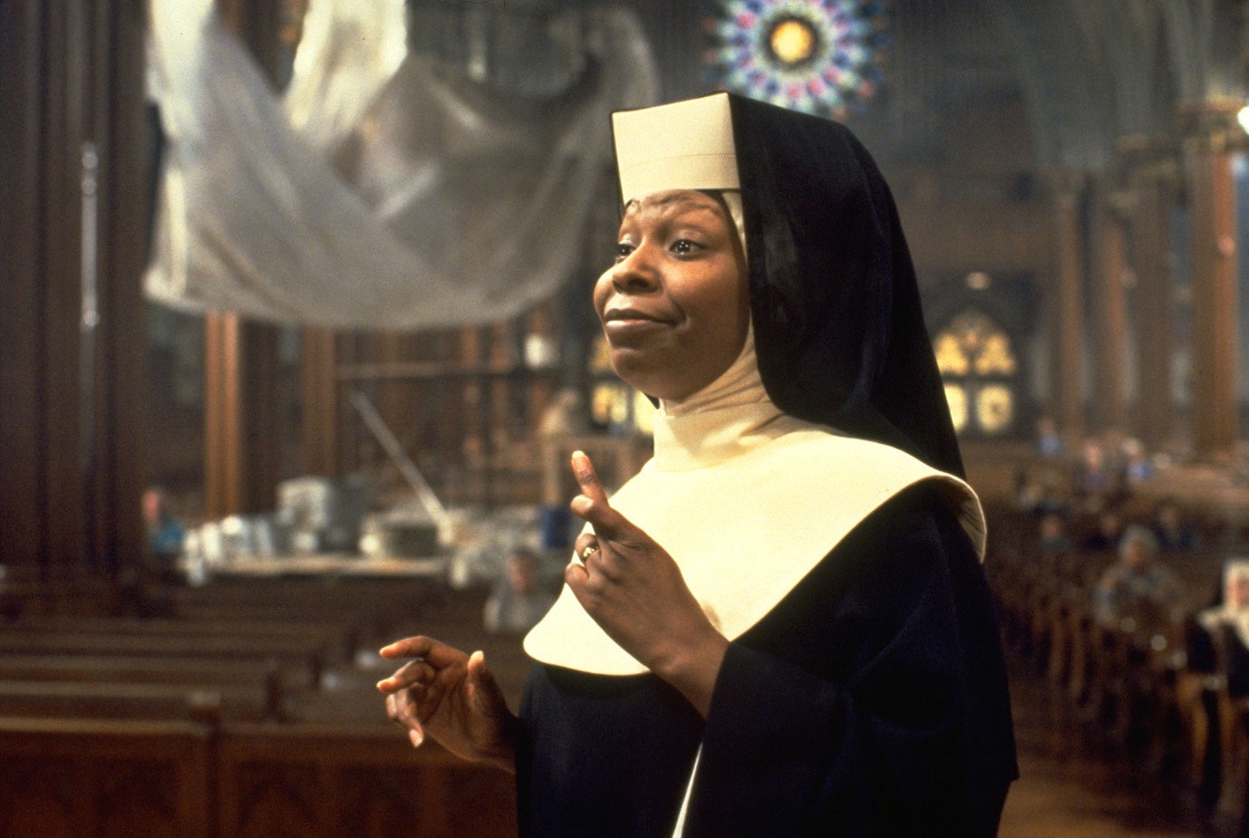 ネバダ州を牛耳るギャング、ヴィンスの愛人であるクラブ歌手デロリス。ヴィンスによる殺人現場を目撃してしまった彼女は、警察に逃げ込み重要参考人として保護される。そしてヴィンスの裁判の日まで身を隠すため、聖キャサリン修道院でシスターとして過ごすことになる。ある日聖歌隊の指揮者を任されることになったデロリスは、メンバーを鍛えると同時に、退屈な聖歌をゴスペルにアレンジ。やがて聖歌隊は町中の人気を集める。