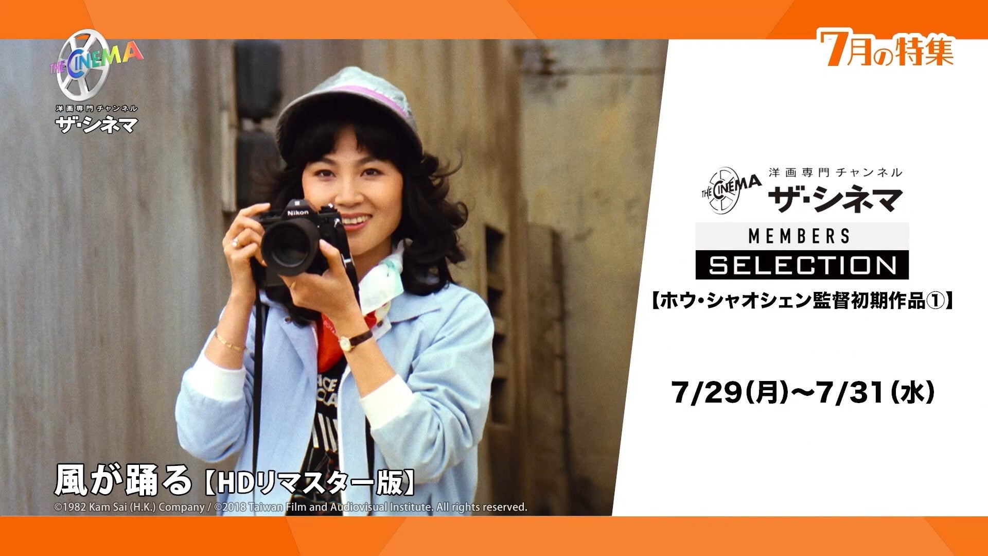 ザ・シネマメンバーズがセレクトした上質な映画を特集する【ザ・シネマメンバーズセレクション】。80年に『ステキな彼女』で監督デビュー。83年オムニバス映画『坊やの人形』で、台湾ニュー・シネマの代表的な監督となったホウ・シャオシェン(侯孝賢)監督の初期作品を2か月連続で特集します。