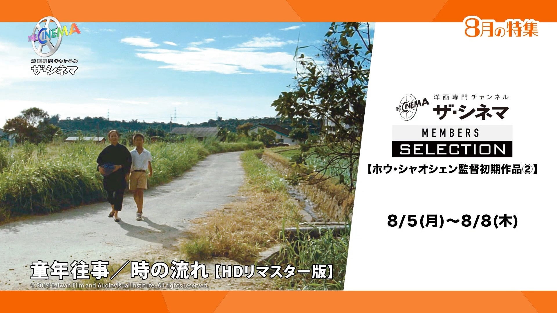 8月は、ベルリン映画祭国際批評家連盟賞受賞の自伝的作品『童年往事/時の流れ』、孤独な少女が大都会でひたむきに生きていく…台湾ニューシネマの旗手ホウ・シャオシェンの青春群像劇『ナイルの娘』、アジアオールスターキャストで遊郭の豪華絢爛な世界を描く『フラワーズ・オブ・シャンハイ』の3作品をHDリマスター版・4Kデジタル修復版にてテレビ初放送。さらに、ホウ・シャオシェンに師事した台湾映画界の新星ホアン・シー監督のデビュー作『台北暮色』のテレビ初放送を合わせて、4作品を8月5日(月)~8日(木)にお届けいたします。