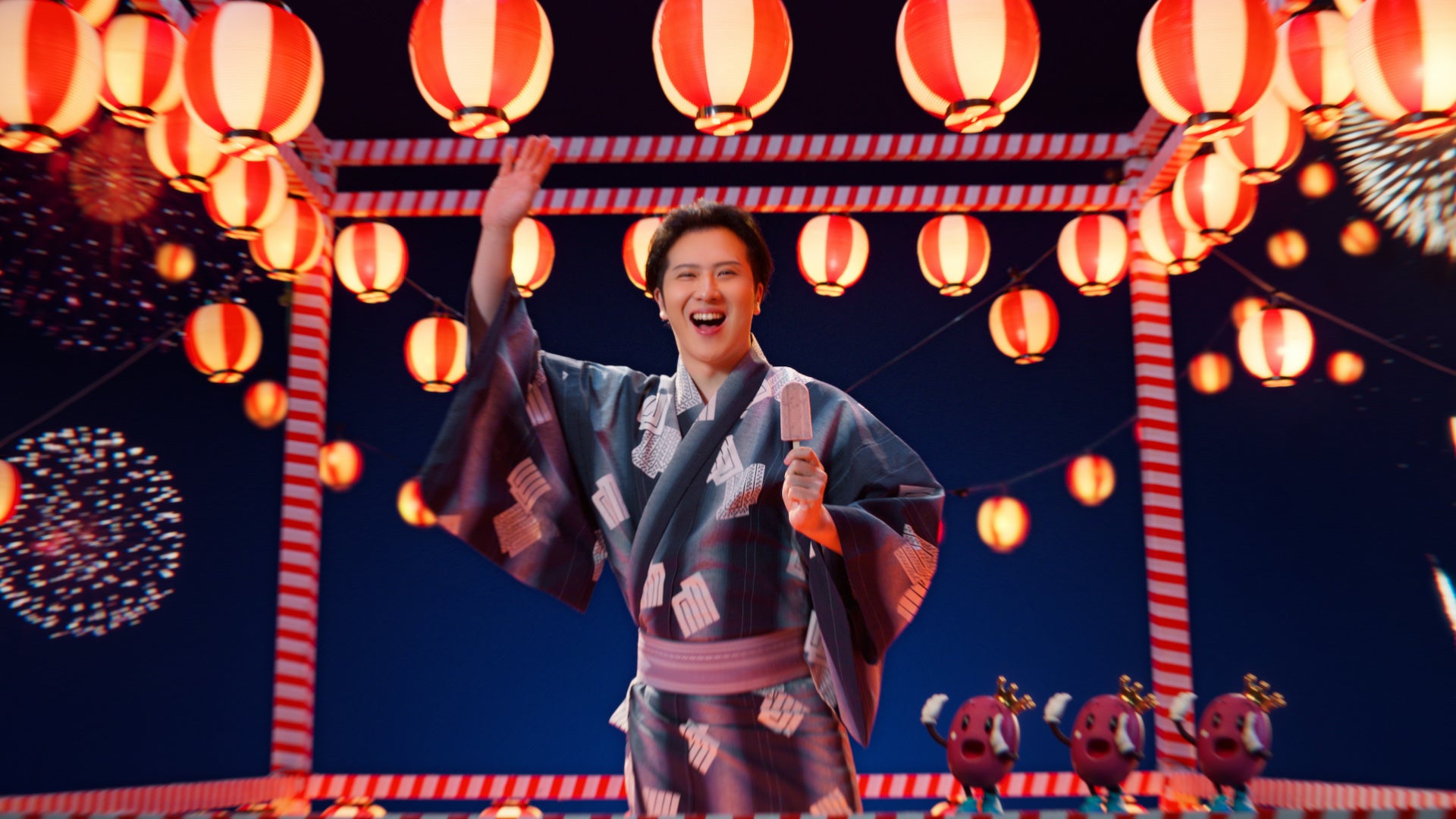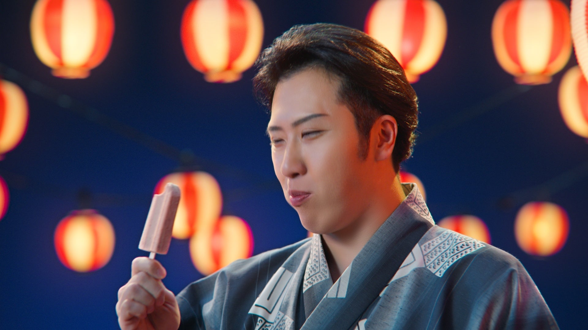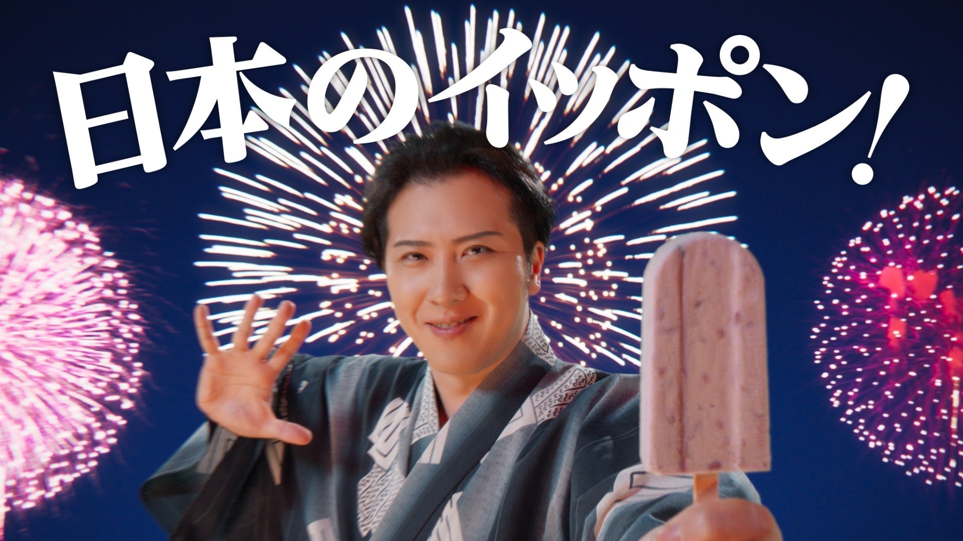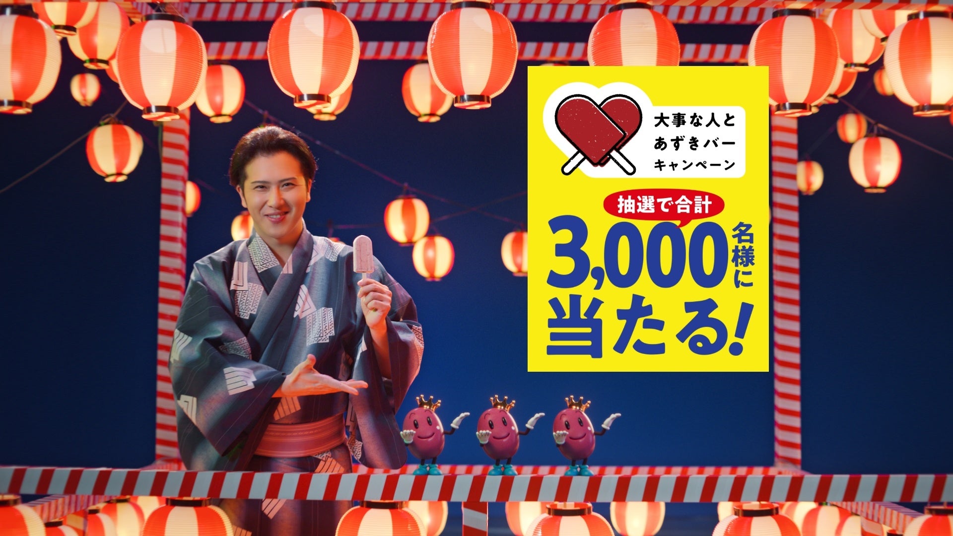 キャッチコピーを「日本(ニッポン)のイッポン!」とし、日本を代表する夏の風物詩である『盆踊り』と『あずきバー』を融合させ、あずきバーで暑い夏を乗り切っていただきたいという思いを表現しました。尾上松也さんが「やぐら」の上で華麗に踊る姿とかわいらしいアズキキングの息の合った掛け合いも見どころです。