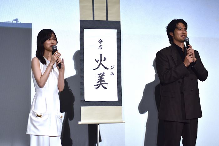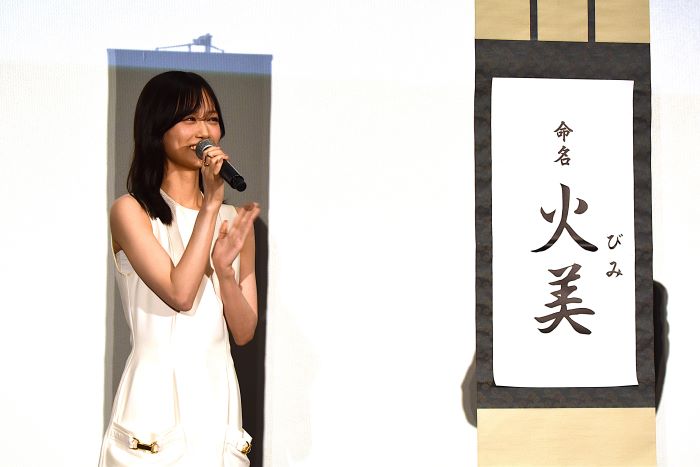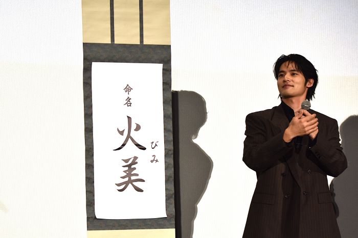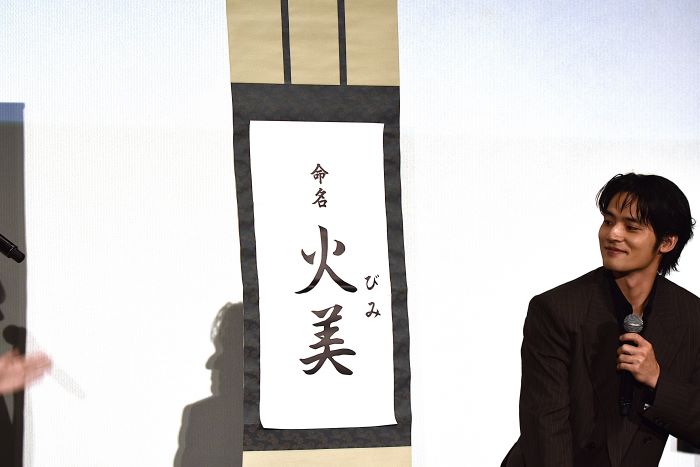そして、水上が掛け軸の紐を引くと、そこには「火美(ビミ)」という名前が掲げられていました。宮舘は「“火”に“美しい”で火美。新しいですね」と微笑みながら感想を述べました。