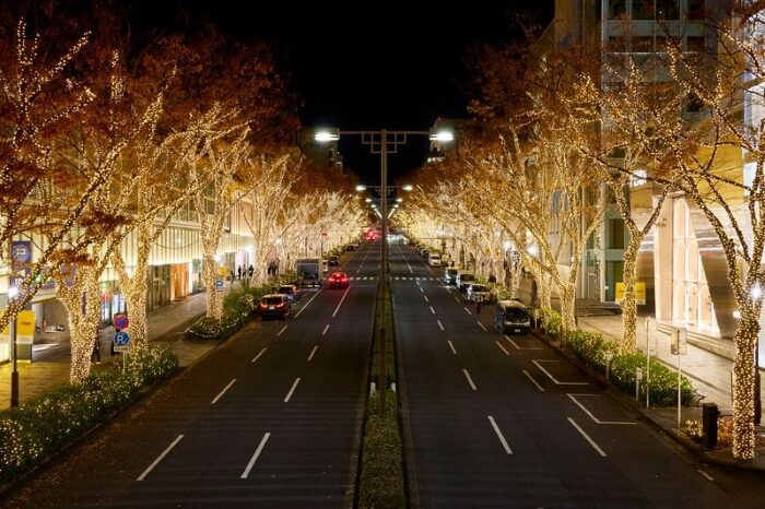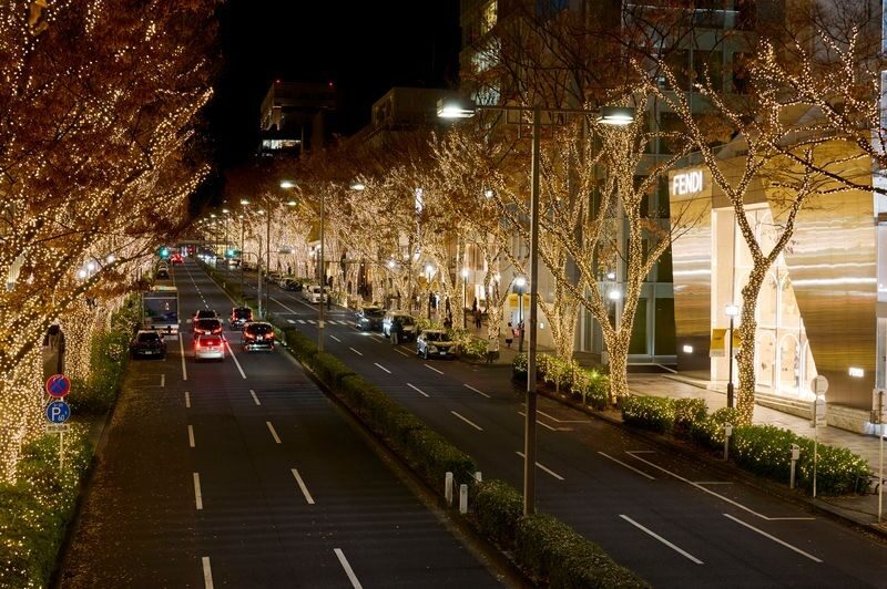 表参道のイルミネーションは1991年から続くイベントです。今年も昨年に続き、イタリアのファッションブランド「FENDI(フェンディ)」が単独スポンサーを務め、原宿表参道欅会と協力して「表参道 フェンディ イルミネーション 2025」を実施します。表参道のメインストリートを彩る約1kmのケヤキ並木が、華やかな光で冬の街並みを照らします。