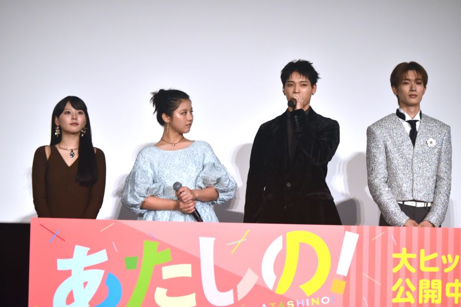 『あたしの!』の初日舞台挨拶が11月8日(金)にTOHOシネマズ新宿で行われ、渡邉美穂、木村柾哉(INI)、齊藤なぎさ、山中柔太朗、横堀光範監督が登壇した。