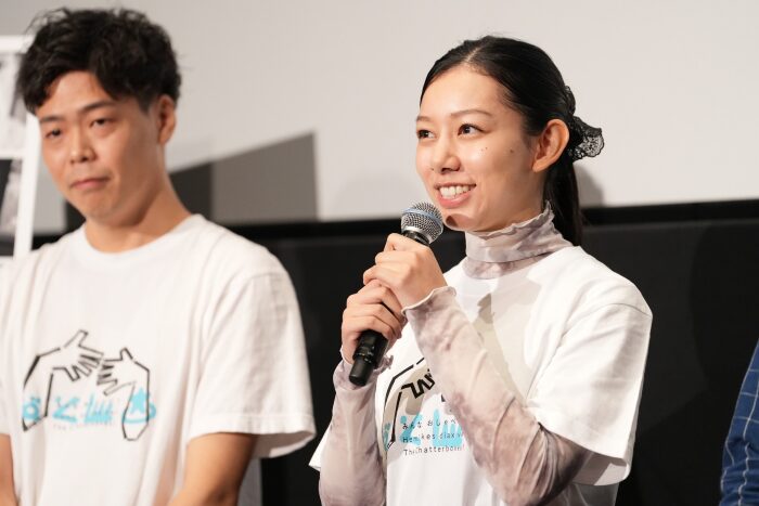 映画デビューを飾った毛塚和義は「今回が映画初デビューです。ぜひ楽しんでください」と出演の喜びを伝えた。また、那須英彰は「コメディとして笑えるだけでなく、“言語”という大切なテーマも描かれています」と作品をアピールし、会場は温かな拍手に包まれた。