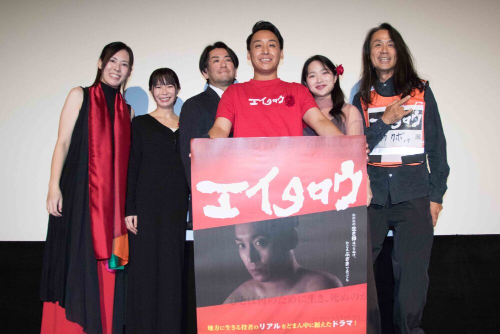 オール鹿児島ロケ&オール地元在住役者で撮影した純度100%の鹿児島産インディーズ映画であり、地方役者にフォーカスしたヒューマンコメディ『エイタロウ』の初日舞台挨拶が10月4日に池袋シネマ・ロサで行われ、主演の德田英太郎、春田早希奈、宮内尚起、青川穂美里、石月朝、久保理茎監督が登壇した。