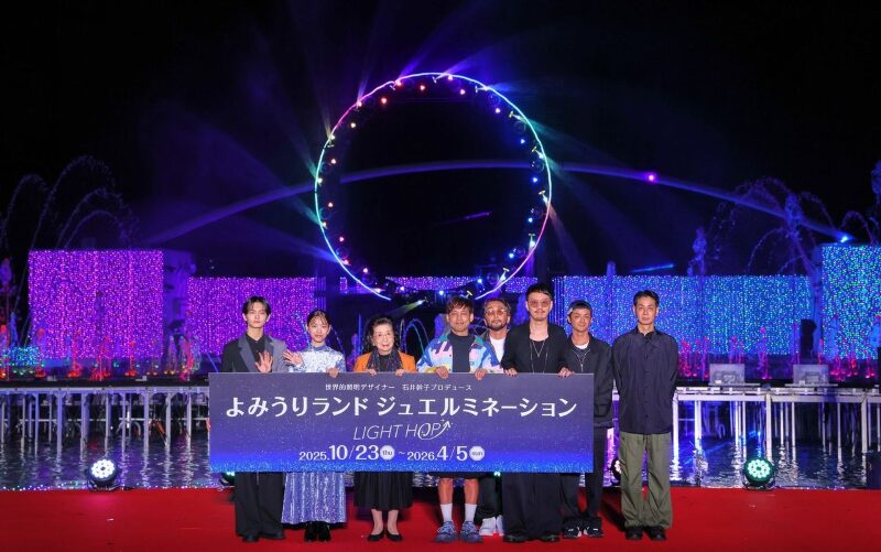 その後、点灯式へと移り、當真、齋藤、ORANGE RANGE、そして関係者たちが、MCと観客のカウントダウンの掛け声に合わせて、壇上の点灯ボタンを押すと、エリア一帯の美しいイルミネーションの点灯と幅60m、高さは15mにも及ぶ噴水が打ち上がる。まさに圧巻の光景がパーク内に作り出され、それぞれが惚れ惚れした様子で見つめる中、當真は「カラフルで綺麗ですし、噴水の演出も相まって幻想的です。こんな素敵な場に参加させていただけてありがとうございます」、齋藤は「ついに始まりました! 迫力がすごいですし、またプライベートでも何度でも見に来たいですね!」と感激した表情を見せていた。