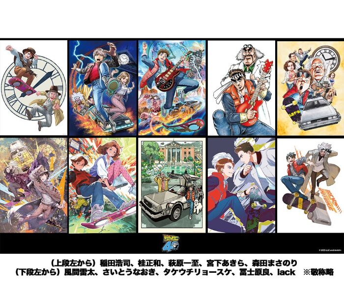 映画『バック・トゥ・ザ・フューチャー』アーティストコラボ企画として、日本を代表する漫画家・イラストレーター総勢10名が『バック・トゥ・ザ・フューチャー』へのリスペクトを込めて参加する本スペシャルプロジェクトのイラストが初公開!名作への愛と敬意を込めて描かれた、珠玉のスペシャルイラストは、各作家独自の感性で『バック・トゥ・ザ・フューチャー』の世界観を再解釈し、会場を華やかに彩ります。さらに、そのアートを使った限定グッズも展開予定!まさに夢のような顔ぶれによる特別企画は、『バック・トゥ・ザ・フューチャー』ファンならば絶対に見逃せません!