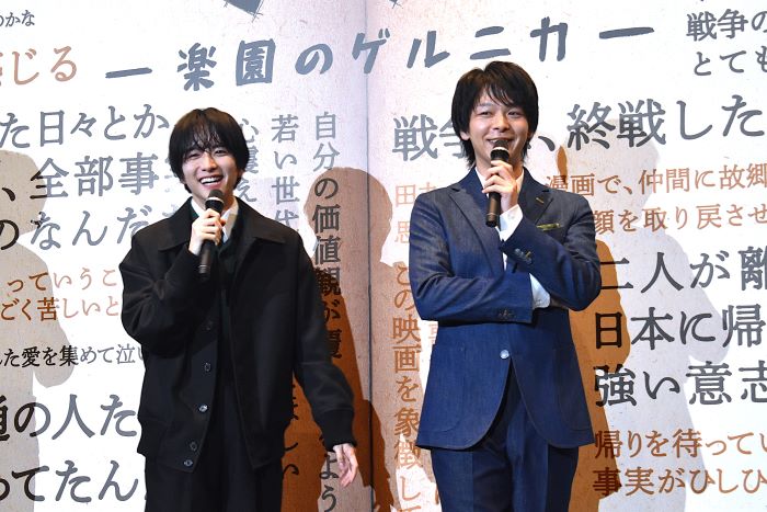 作品の反響について、板垣は「祖父から戦争の話を聞いたことを思い出した、という声をいただくことがあります。本作がきっかけで記憶が呼び起こされ、戦争への理解が深まるのであれば嬉しいです。それが作品を届ける意義の一つだと感じています」と語った。一方、中村さんは「僕は友達が少ないので反響と言われても…」と笑いを誘いながら、「登壇前に、SNSでも好意的な意見が多いと聞き、嬉しく思いました」と笑顔を見せた。