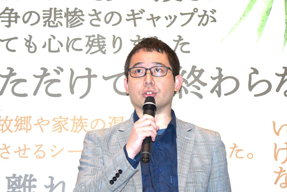 ステージの背景には、試写会などで本作を鑑賞した観客から寄せられた感想がパネルとして掲示されていた。「若い世代にこそ見てほしい」「かわいらしい絵柄が戦争の残酷さを際立たせている」「自然の美しさと厳しさの対比が印象的」「ずっと涙が止まらなかった」「日常をもっと大切にしたいと感じた」など、多様な声が紹介されていた。
