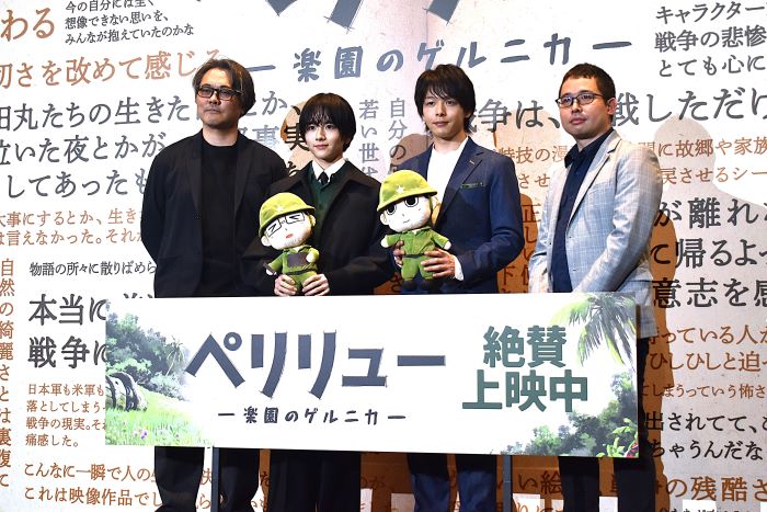 久慈監督は、板垣と中村の熱演について「ペリリュー島にいる等身大の若者の声を表現してほしいという思いがありました。特に最後のセリフは重要な場面でしたが、アフレコでは一度でしっかり表現していただけました」と語り、高く評価した。