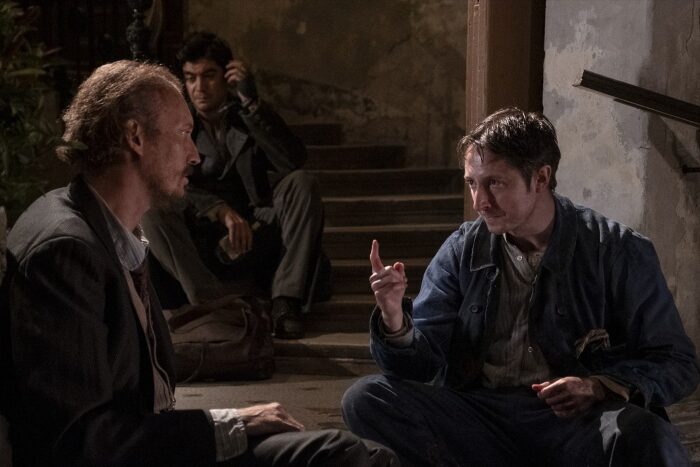 場面写真では、道端で自らの絵を売るモディリアーニの姿、彼の恋人や友人たち、そしてモーリス・ガンニャ(アル・パチーノ)が切り取られており、モディリアーニの運命を揺らす予感を漂わせている。