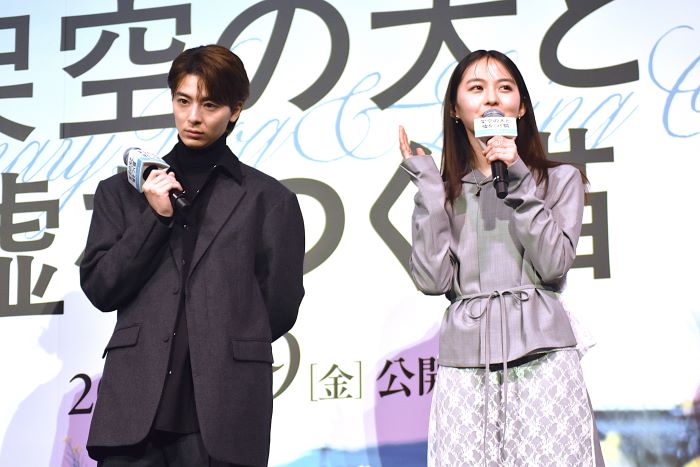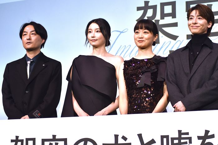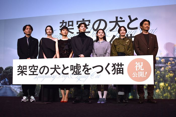 『架空の犬と嘘をつく猫』の初日舞台挨拶が1月9日(金)にTOHOシネマズ日比谷で行われ、高杉真宙、伊藤万理華、深川麻衣、安藤裕子、向里祐香、安田顕、森ガキ侑大監督が登壇した。
