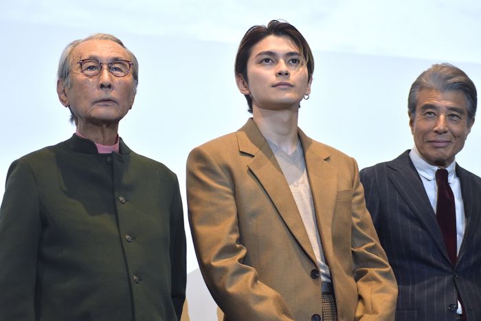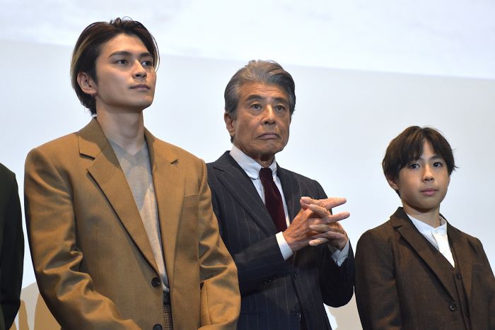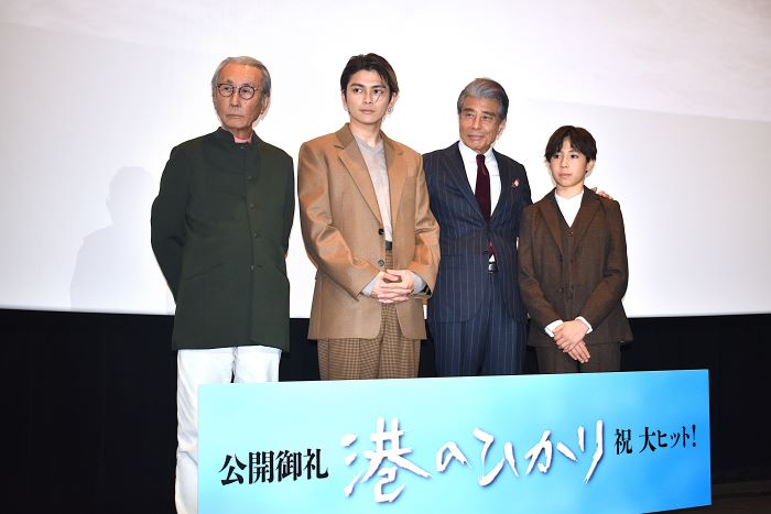 公開中の映画『港のひかり』の舞台挨拶が11月26日、都内にて行われ、俳優の舘ひろし、眞栄田郷敦、尾上眞秀と撮影の木村大作が登壇。木村キャメラマンの歯に衣着せぬトークに舘も苦笑した。
