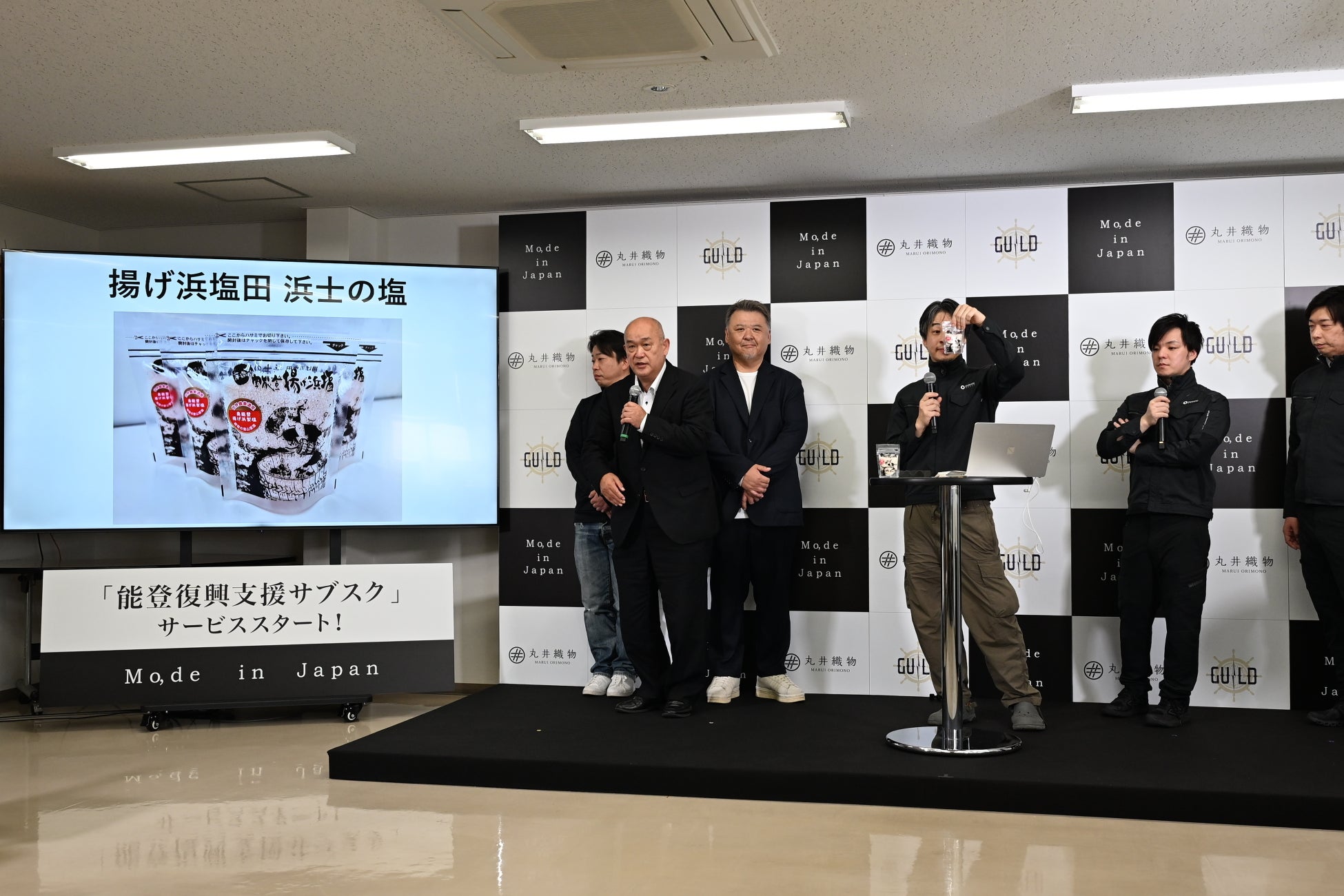 また、この日は、丸井織物株式会社 代表取締役副社長であり、株式会社made in Japan 取締役の宮本智行、株式会社GUILD(ギルド)代表取締役であり、株式会社made in Japan 取締役の高橋将一さん