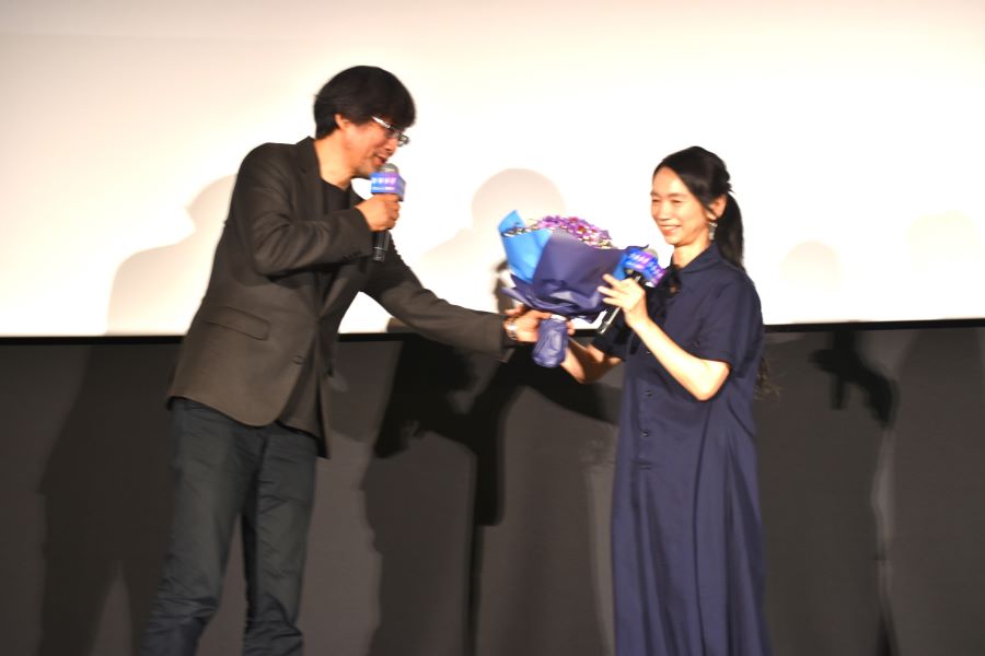 MCから「鑑賞2回目で注目してほしいポイントは?」というテーマでは、佐藤監督が「お花が飛ぶシーンです。今日友達からメールが来て『お花のシーンを観た瞬間に涙がバーッと出て浄化された。悩んでいたことがなくなった』と。この映画にはそんなパワーがあるんだと思って、私ちょっと感動しちゃったんです」と感情を込めて話しました。