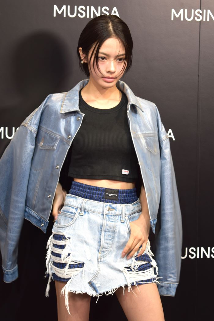 この日安斉さんは、黒のショートトップスにライトブルーのデニムジャケット、ダメージ加工のミニデニムスカート、黒のロングブーツを組み合わせた、甘さとクールさが融合したスタイルで登場。イベントのコンセプト「らしさ、MUSINSA」にちなんで“自分らしさ”について尋ねられると、「自分を愛することです」と語り、「自分を大切にすることで、他人にも優しくなれると思うので、“Love yourself”が自分のテーマです」と笑顔を見せました。