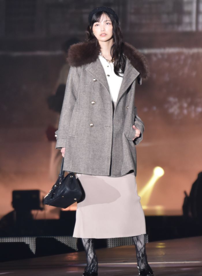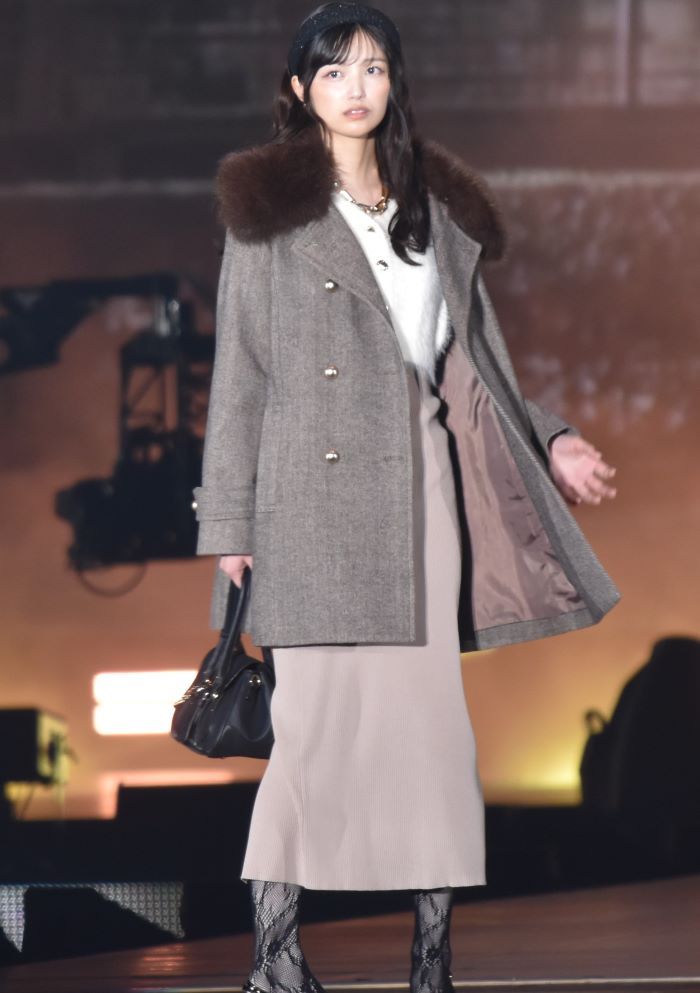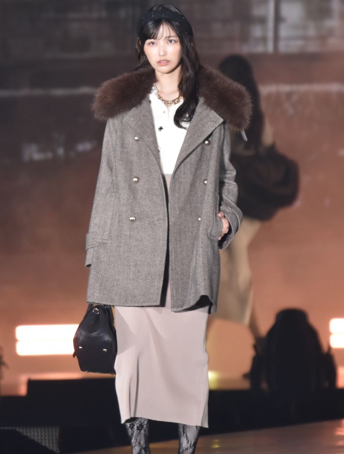 梅澤は『2nd SHOW』の「rienda」ステージに登場。グレーのコートにミニパンツを合わせたスタイリングで、スタイリッシュな印象を演出。すらりとした美脚が際立ち、クールな表情とともに観客の視線を引きつけた。大人の魅力と可愛らしさをバランスよく感じさせるランウェイとなった。
