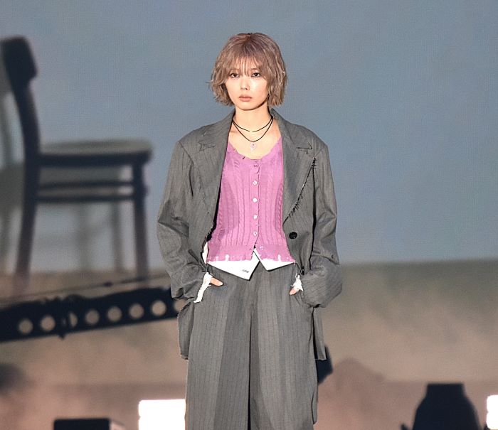 藤吉さんは、グレーのジャケットとパンツのセットアップを着用し、落ち着いた表情とともに独自の雰囲気を演出。観客の注目を集めました。