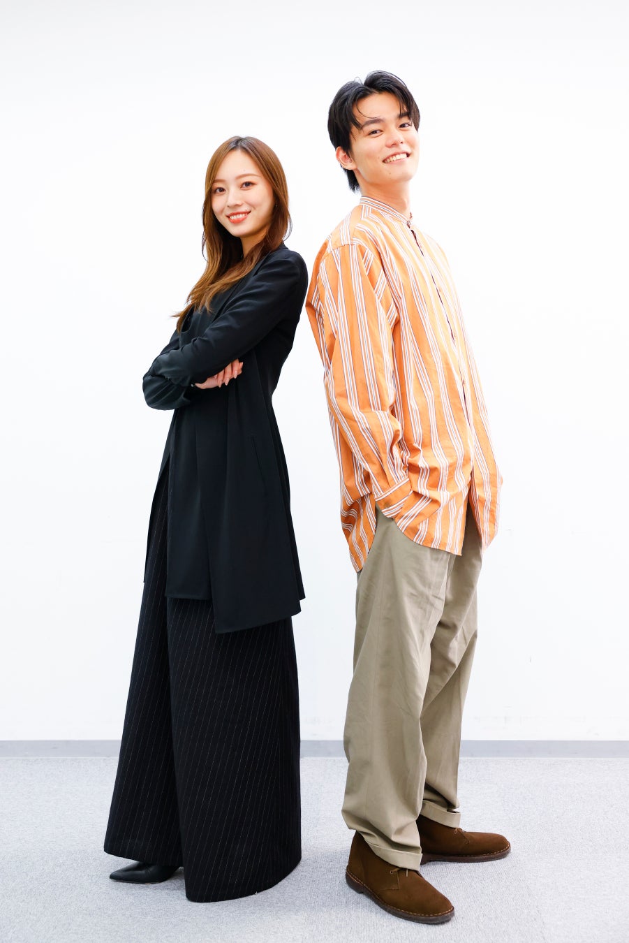 また、作中で自らが演じる役に共感できる部分があるか質問されると、日向は「僕が演じた戸村というキャラクターは、“バラエティーを見るのが好き”だった立場から、自分もバラエティーを作りたいという気持ちでテレビ業界に飛び込んだんです。僕も本当にこのお仕事が大好きなので“好きなことをお仕事にしている”という部分は、戸村に共感するものがありました。僕はそういった仕打ちされたことはないんですが…プライドを持ってやっていることを上司や上の立場の人たちから否定された戸村の嫌悪感は“こういう気持ちなんだろうな”と(想像できて)入りやすかったですね」と答えた。梅澤は「(私が演じる)和は正義感とか責任感とか、行動力とかがすごくある女性です。自分で言うのもあれなんですけど、私は正義感はある方だと思っていて(笑)お仕事にプライドを持っている責任感というか。すごく真っ直ぐに生きているところが…いや、真っ直ぐとか自分で言うと…(笑)」と、役柄と自分を重ねて話し始めたものの、自分で自分の長所を語る状況に気恥ずかしくなってしまう。そんな梅澤の様子に会場は笑いの渦に包まれた。日向に「正義感ありますよ!素敵ですよ!(笑)」と励まされつつ、梅澤はさらに「行動力とか思ったことを相手にきちんと真正面から伝えるパワーとか、そういうところは私に足りない部分だと思います。和から“こういう女性ってかっこいいな”って思わせてもらったところです」と続けた。