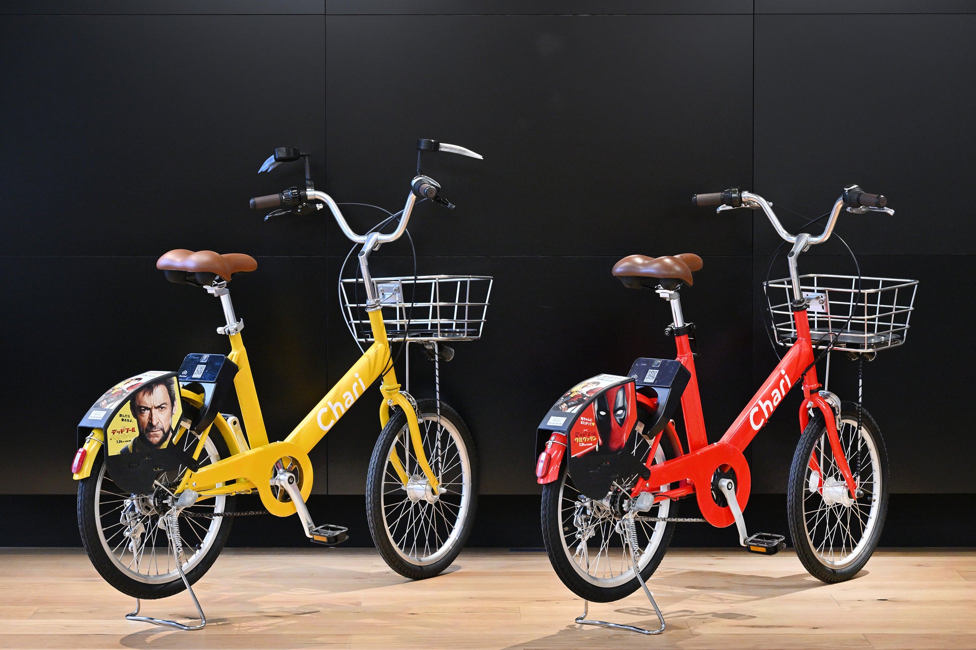 さらに、車体すべてがウルヴァリンカラーである黄色に変わり、なんとハンドル部分にウルヴァリンのシンボルである「爪」が付いた、特別なウルヴァリン仕様のチャリチャリも期間限定、10台限定で登場します。デッドプールとウルヴァリンのチャリチャリがこの夏、福岡の街を疾走します。チャリチャリの車体の特別塗装を施したキャンペーンの実施は、チャリチャリとして今回が初めてです。