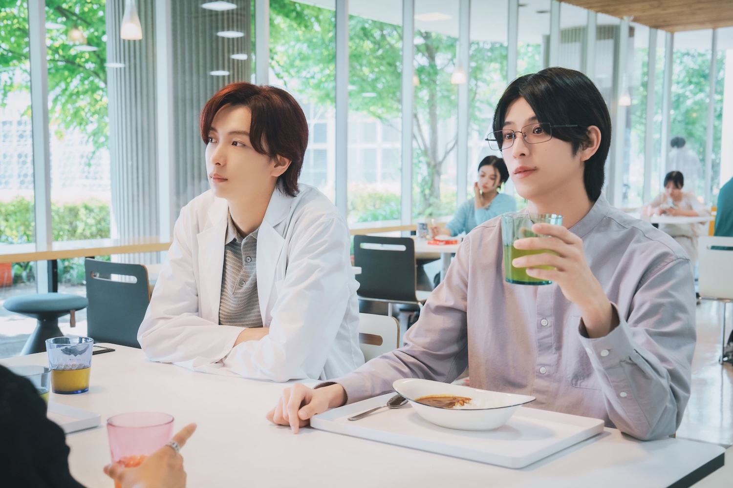そんな時、学生証を届けに大学まで現れた湊。学食で静真と湊が話していると、元カノのユカ(濱岸ひより)が彼氏といる場面に遭遇する。そこに静真の友人・巽(阿久根温世/ICEx)と近澤(小西詠斗)が合流し、静真に昨晩何があったのかを問い詰める。湊に対して、デリカシーのない発言をしてしまう巽。静真は湊をかばい、その場から離れる。湊は、静真の自分をかばってくれた姿や、元カノにも真摯に幸せを願う誠実さに心が揺らぎ始めていた。