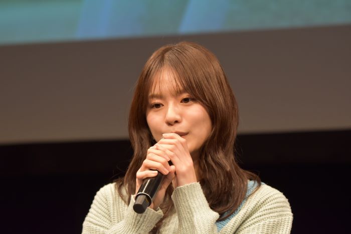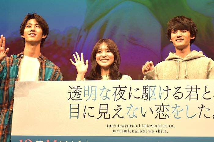 俳優の永瀬莉子が3日、都内で行われたMBSの連続ドラマ『透明な夜に駆ける君と、目に見えない恋をした。』(木曜深夜0時59分)1話先行上映会&トークイベントに、永瀬と同じくダブル主演を務める藤原大祐をはじめ、曽野舜太(M!LK)、河村花と共に登壇した。