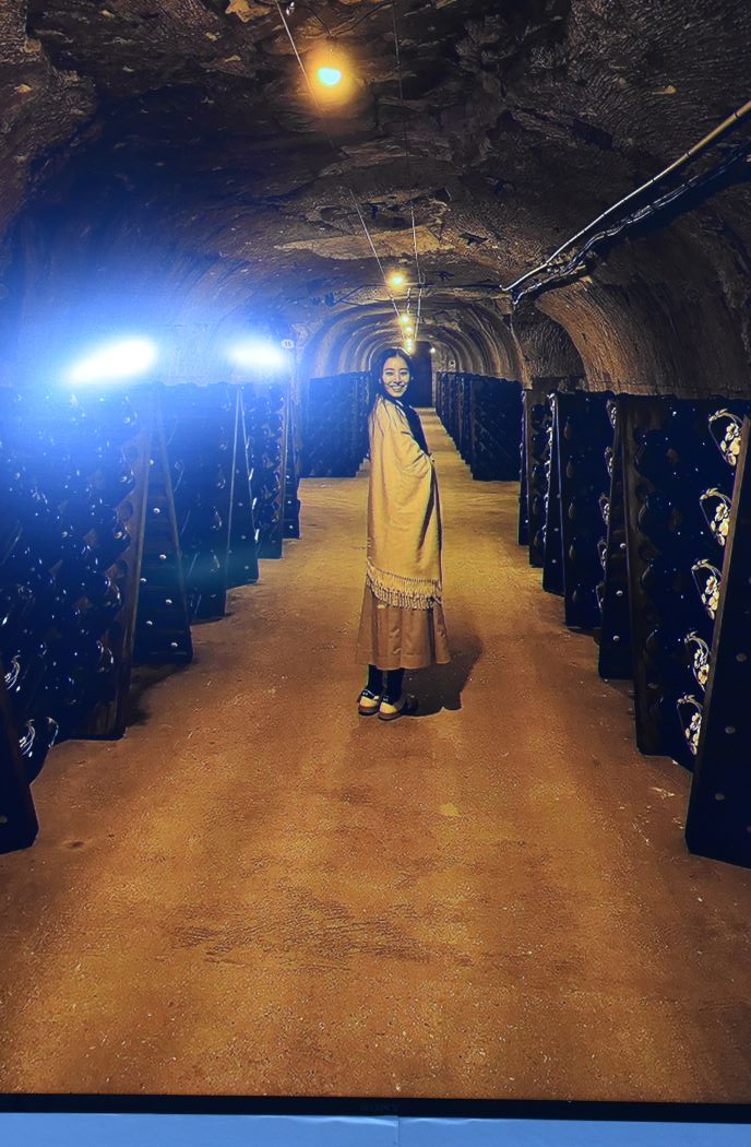また、ブランドムービーの撮影のためにフランスにあるペリエ ジュエのシャンパーニュメゾンを訪れたエピソードも披露。地下のシャンパンセラーで撮影が行われたそうで、「多くのブランドのボトルが並ぶ中で、それぞれの製造工程やこだわりを実際に伺うことができ、貴重な体験になりました」と語った。セラー内の気温についても「年間を通して涼しく保たれていて、とても快適でした。ちょっとシャンパンの気持ちがわかる気がしました」と、場を和ませる一幕もあった。