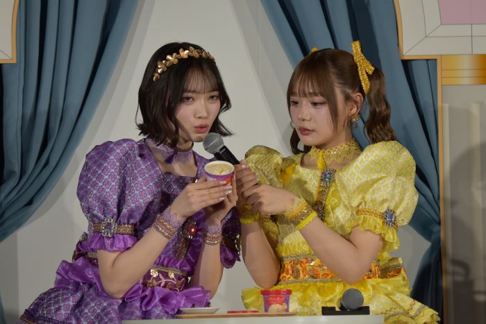 フリップを用いた魅力紹介では、古澤が記述を担当したが、途中で表記に迷う場面があり、会場の雰囲気を和ませる一幕も見られた。その後、2人で協力して「上品さをまとった自分に少し甘酸っぱい時間を…」というメッセージを完成させ、来場者から好意的な反応を得た。