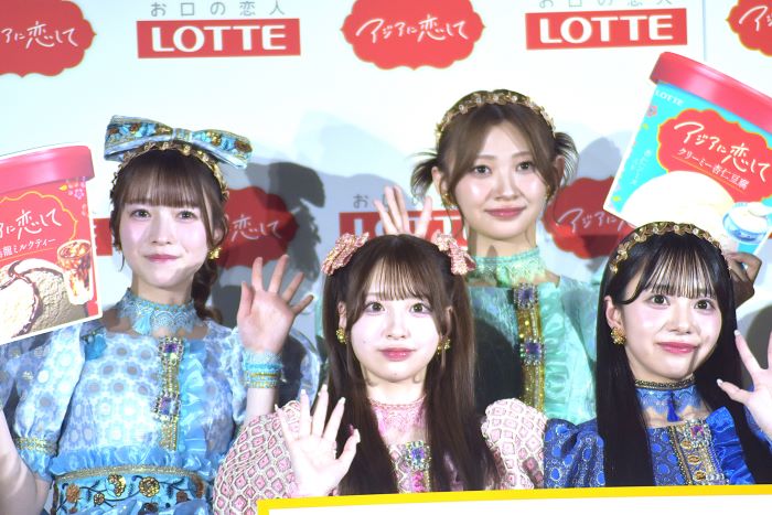 ロッテは3月25日、新アイスブランド「アジアに恋して」の新商品発表会を開催した。今回発売された新商品では、若年層に人気のアイドルグループ「CUTIE STREET」とのタイアップ企画が実施された。発売記念のイベントが開催され、メンバーの古澤里紗、佐野愛花、板倉可奈、増田彩乃、川本笑瑠、梅田みゆ、真鍋凪咲、桜庭遥花が参加した。