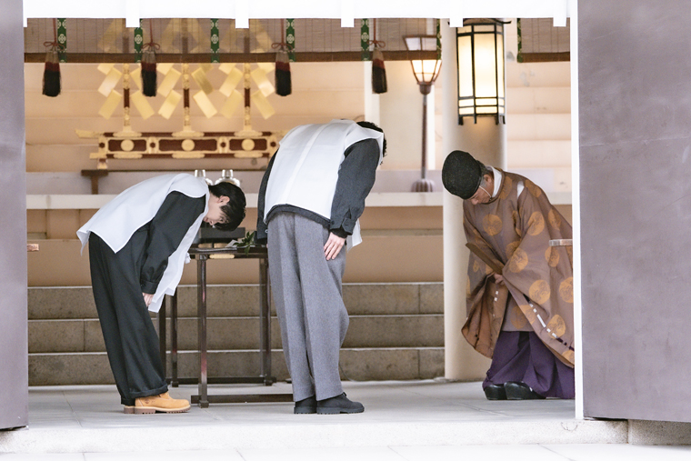 2月27日(金)に公開を迎える映画『木挽町のあだ討ち』の大ヒット祈願イベントが行われ、仇討ち事件の真相を探る田舎侍・加瀬総一郎役の柄本佑、仇討ちの使命を背負う若侍・伊納菊之助役の長尾謙杜が出席。本殿で御祈祷を受け、玉串奉納を行い、心を込めて大ヒットを祈願した。
