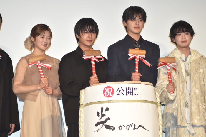 また、松田監督は、約3年にわたる構想を経て公開初日を迎えられたことについて、スタッフおよびキャスト一同の思いを代弁する形で感慨深さを示し、作品の完成度に自信を見せた。さらに、本編の見どころとなるシーンについても紹介し、イベントの締めくくりには鏡開きが行われ、公開初日を祝した。