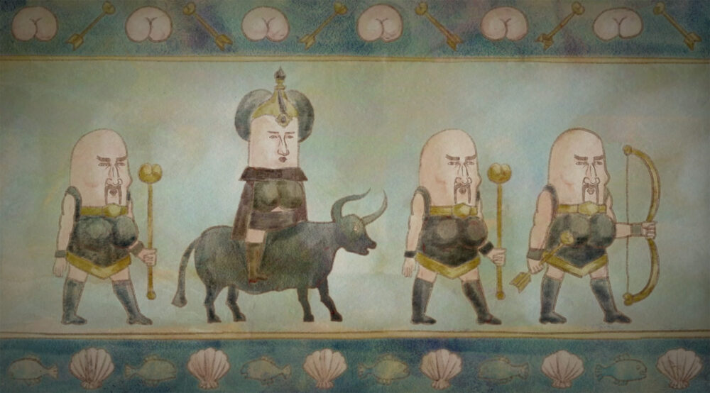 そんな中、不穏な動きが…。かつて存在したと⾔い伝えられている”おしり前帝国”を復活させ、⼈々を⽀配しようとする邪悪な影が、世界を覆いつくそうとしていた。