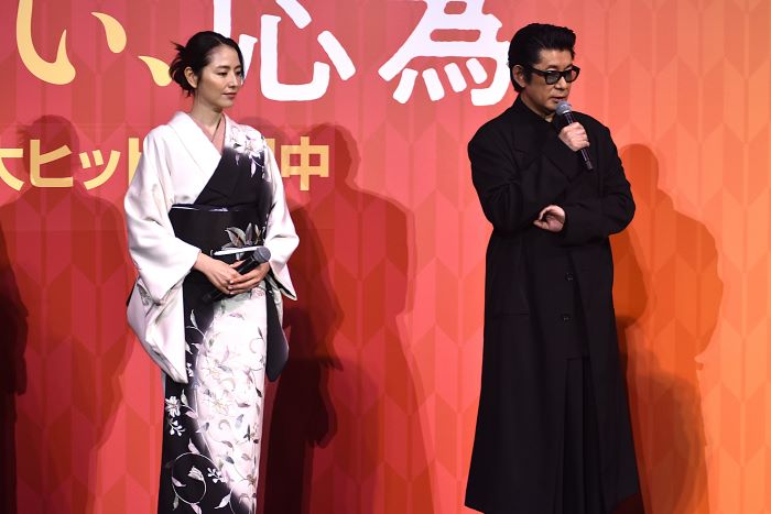 永瀬も「後半のあるシーンで、北斎にとって大切な人物が先に亡くなる場面があるのですが、そのとき北斎が祈るように前へ出てしまったことがありました。そんなとき、長澤さんが自然に現世に引き戻してくれたように演じてくれた。その引きの芝居にとても感動しました」と語り、アドリブを交えたやりとりによって、親子の絆がより深く表現されたことに感謝の気持ちを伝えていました。