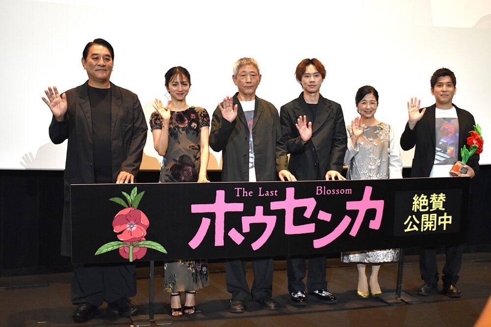 俳優の小林薫、戸塚純貴、満島ひかり、宮崎美子、ピエール瀧、木下 麦監督が10月11日、アニメーション映画『ホウセンカ』の公開記念上映会の舞台あいさつに登壇しました。