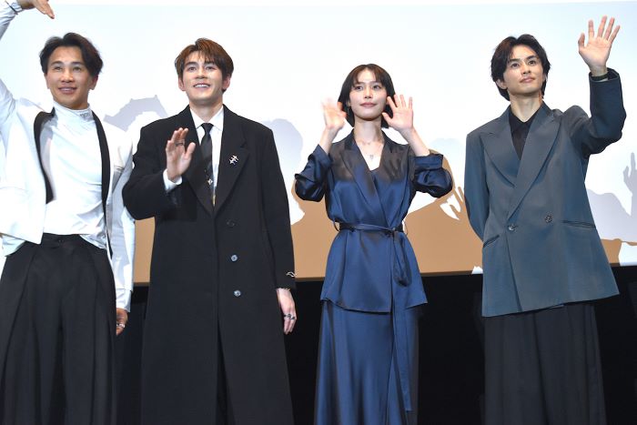 映画『殺手#4』(キラー・ナンバー4)初日舞台挨拶にジェフリー・ガイ、南沙良、超特急・草川拓弥、リョン・コイイン監督とに登壇した。