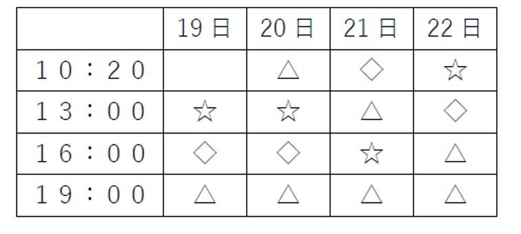 ※各回完全入れ替え制 ※作品と上映時間が日程により異なります。