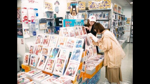 さらに併せて由嘉里がライ(南琴奈)をつれて、「ミート・イズ・マイン」の同人誌やグッズを買いに行くシーンの場面写真も解禁。店の展開も細部までこだわっており、非常にリアリティが高い1枚となっている。