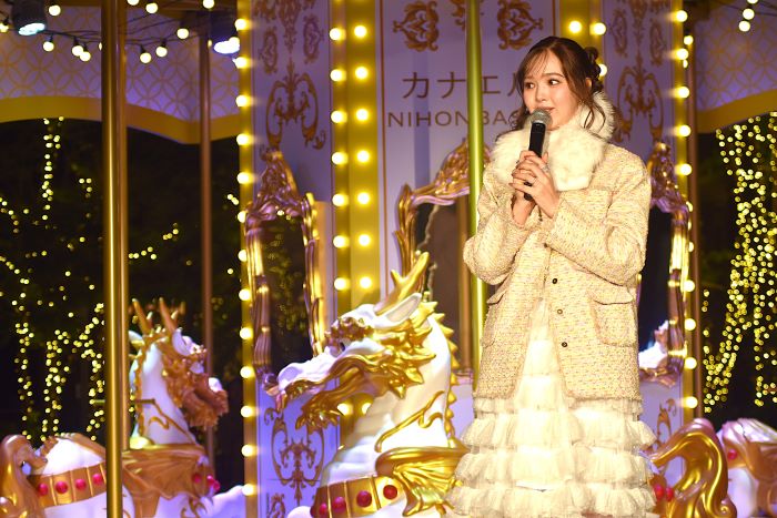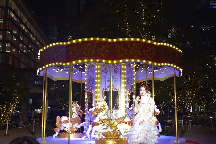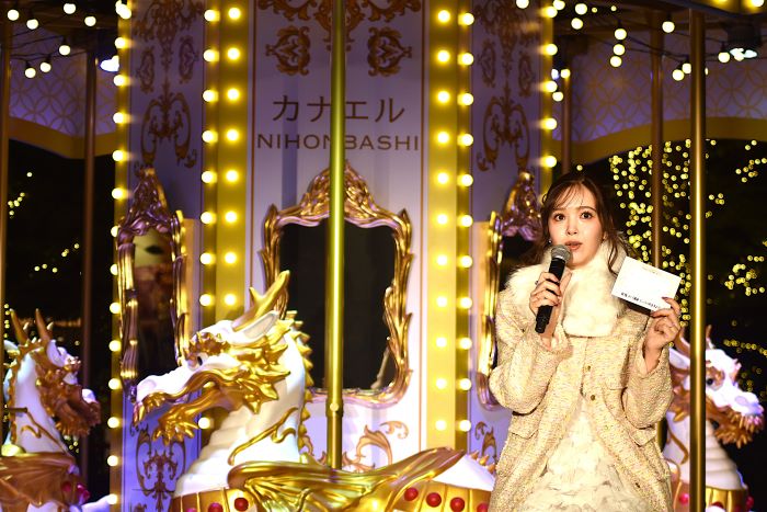このイベントは、2025年11月21日から2026年2月15日まで日本橋エリアで実施されるイルミネーションと連動した“願いをかなえる”体験型プロジェクトで、会場には象徴として“麒麟(きりん)”をモチーフにした「麒麟ゴーラウンド」が初めて設置された。藤田さんは、その点灯ボタンを押して会場を明るく照らし、幻想的な雰囲気を盛り上げた。
