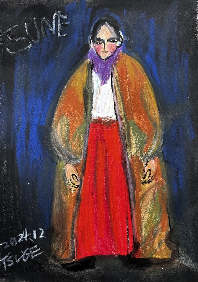 『脛擦りの森』© 『脛擦りの森』プロジェクトまた、人物デザイン監修について「人物を構成している衣裳や髪型、化粧、小道具など“扮装”の統括」と定義している柘植氏は、本作でもその土地とキャラクターに合ったコンセプトを作り上げたそうで、さゆりと若い男が履く長靴は「水があったり、雪が降る中で一番適切なものは何かを考えた時に、長靴を履くんじゃないかなと思って。しかも長い綿入れ(どてら)に長靴を履くのは“あり得るけれど、違和感がある”。それがちょうどいいなと思ったんです。その“違和感”は魔境の世界の感覚で、“あり得る”という感覚は現実世界。その両方が同居する話なので、扮装そのもの、人物デザインの中にもその両義性が入り込むと良いかなと思ったんです」と説明。