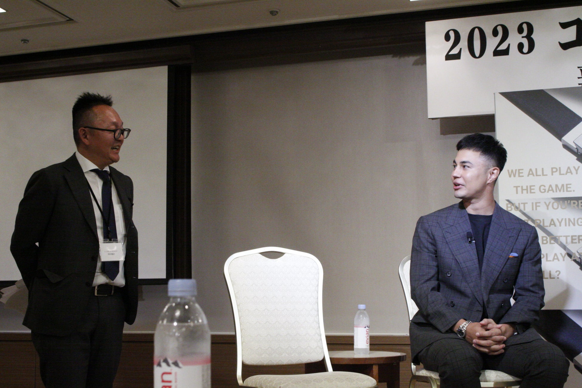 MCの紹介でトークセッションが始まるとユージは「スポーツでいうと最近はゴルフにはまっていまして、僕も飛距離は結構自信があって、直近でドラコン大会にも参加しており1回だけですけど日本3位になったことが」とコアエナジーを使用してドラコン大会にも挑んでいることを明かしました。