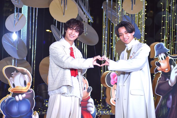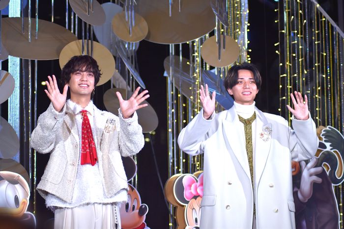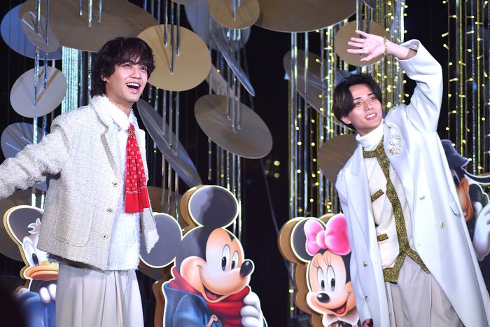King & Princeの永瀬廉と高橋海人が13日、東京・丸ビルで開催された、ミッキー&フレンズをテーマにしたモニュメント「Celebration Tree <Mickey & Friends>」の点灯式に出席した。