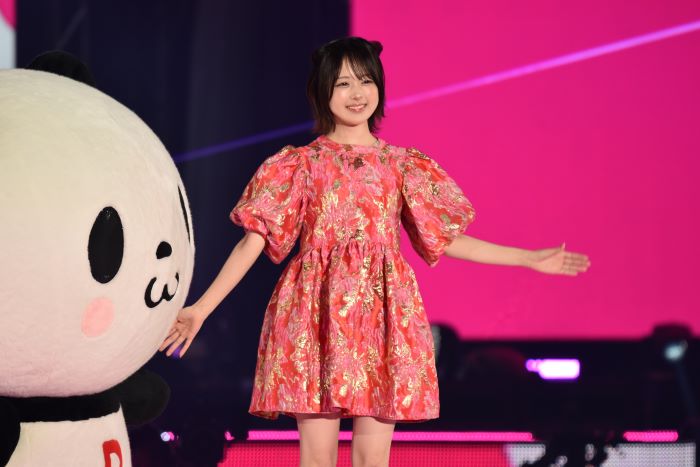 ランウェイでは観客に向かって手を振るほか、両手を頭の上に添えてパンダをイメージしたポーズを見せるなど、愛らしい表情で会場の視線を集めた。隣を歩くお買いものパンダも軽やかな動きで愛嬌のあるパフォーマンスを見せ、なえなのの華やかな雰囲気と相まって、会場は和やかな空気に包まれた。